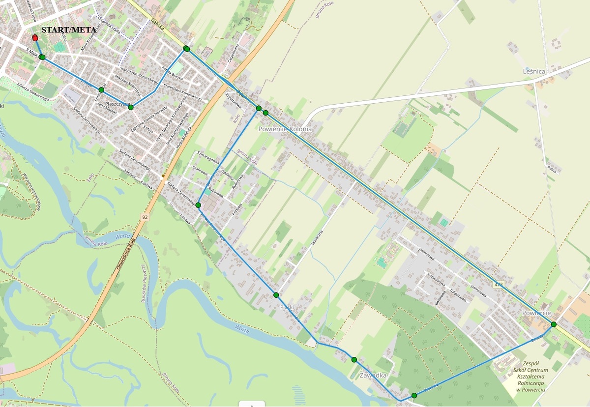 W godzinach od 11:50 do 13:50 nastąpi zamknięcie trasy biegu, która przebiegać będzie ulicami miasta Koła oraz przez miejscowość Powiercie i Kolonia Powiercie.