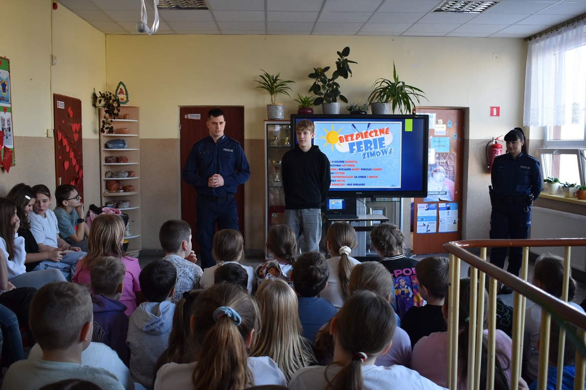 Mundurowi odwiedzili dzieci ze Szkoły Podstawowej nr 2 w Kłodawie, Szkoły Podstawowej w Górkach oraz Szkoły Podstawowej w Wólce Czepowej. Podczas spotkań policjanci rozmawiali z uczniami o zasadach bezpiecznego spędzania czasu wolnego w trakcie ferii zimowych. Przypominali, jak zachowywać się podczas zabaw na świeżym powietrzu, w domu, a także w kontakcie z nieznajomymi. Nie zabrakło również rozmów o bezpieczeństwie na drodze i odpowiedzialnym korzystaniu z Internetu.