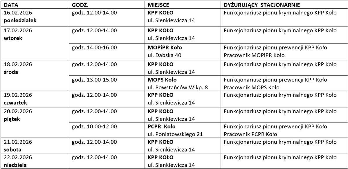 Ministerstwo Sprawiedliwości we współpracy z instytucjami i organizacjami pozarządowymi organizuje cykliczne przedsięwzięcie pod nazwą "Tydzień Pomocy Ofiarom Przestępstw". To ogólnopolska akcja, która ma na celu zwiększenie świadomości o prawach ofiar, ułatwienie dostępu do wsparcia oraz pomoc w procedurach sądowych. Tradycyjnie w działania włącza się również polska Policja. W powiecie kolskim w okresie od 16 do 20 lutego policjanci oraz pracownicy MOPiPR, PCPR i MOPS oferują bezpłatne porady prawne.