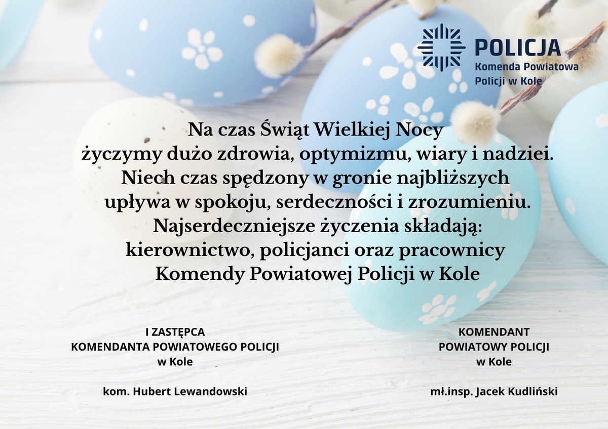 Życzenia Wielkanocne Komendanta Powiatowego Policji w Kole - Aktualności