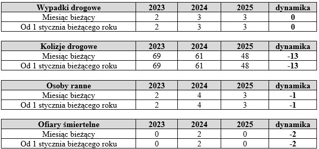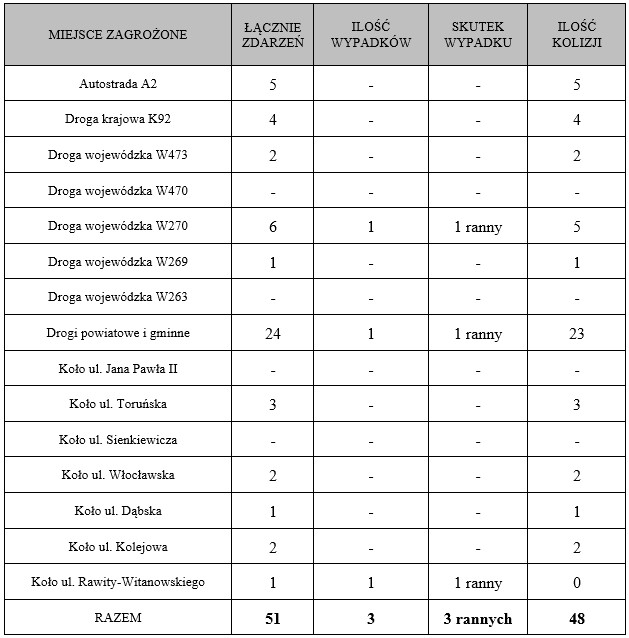 W styczniu 2026 roku na drogach powiatu kolskiego zaistniało łącznie 51 zdarzeń drogowych tj. 3 wypadki drogowe i 48 kolizji. W wypadkach drogowych trzy osoby zostały ranne.